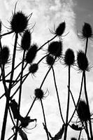 Uitgebloeide distels in zwart wit. Gefotografeerd in de Botanische tuin.