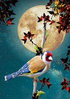 In dit unieke ontwerp is het vogeltje in een romantische, fantasie-achtige setting geplaatst met een prachtige sterrenhemel en volle maan op de achtergrond.