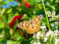 Distelvlinder (Vanessa cardui) in de voorjaarszon