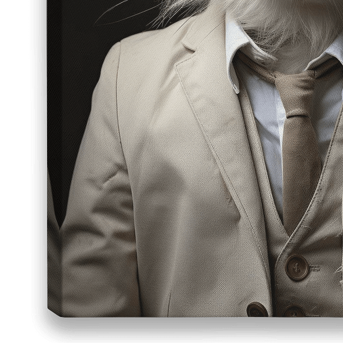 "Distinguished Elegance" is een intrigerende portretfoto die de lijn tussen realiteit en fantasie doet vervagen. Deze afbeelding toont een konijn in de gedaante van een heer, gekleed in een net beige pak met een bijpassende das. De foto is met een vleugje surrealisme genomen tegen een donkere achtergrond, wat het onderwerp naar voren…