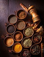 Koop dit digital art kunstwerk Diverse kruiden met zwarte achtergrond van Mustafa Kurnaz als reproductie op canvas, aluminium dibond, (ingelijste) fotoprint, behang en ArtFrame, op maat geprint in Fine-Art kwaliteit.