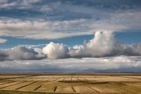 Straatbeeld in het Friese stadje Makkum met huizen en kerkHarrie Muis Hollands landschap met koeien in de wei en fraaie wolkenHarrie Muis