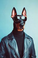 Met zijn rechtopstaande oren en zelfverzekerde blik straalt de Doberman een opmerkelijke mix van elegantie en kracht uit. De stijlvolle zonnebril en het leren jack geven hem een vleugje coole streetstyle, terwijl zijn gespierde bouw en glanzende bontkraag zijn onwrikbare loyaliteit en waakzaamheid benadrukken. Een echte trendsetter in…