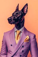 Een majestueuze Doberman, elegant gekleed in een paarse jas, straalt autoriteit en charme uit. Zijn aandachttrekkende, rechtopstaande oren en glanzende zwarte vacht geven hem een betoverende aanwezigheid. De gouden kraag en bijpassende tas voegen een sprankelend accent toe, terwijl zijn blik vol zelfvertrouwen en intelligentie is. Een…