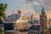 Het cruiseschip Queen Mary 2 legt aan in de Landungsbrücken in Hamburg.
