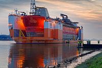 Dockwise Vanguard met als lading de Armada Intrepid in de Rotterdamse haven.
