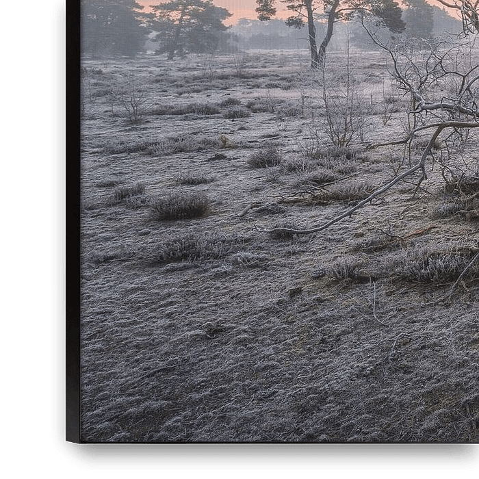 Jouw gekozen kunst als print op doek, gespannen in een aluminium frame. Snel en eenvoudig te verwisselen voor een frisse uitstraling, helemaal zoals jij het wilt.