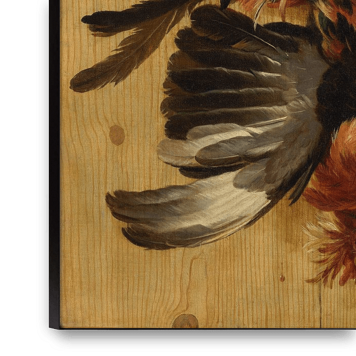 Koop Dode haan Hangend aan een spijker, Melchior d' Hondecoeter als reproductie op canvas, aluminium dibond, (ingelijste) fotoprint, behang en ArtFrame, op maat geprint in Fine-Art kwaliteit.