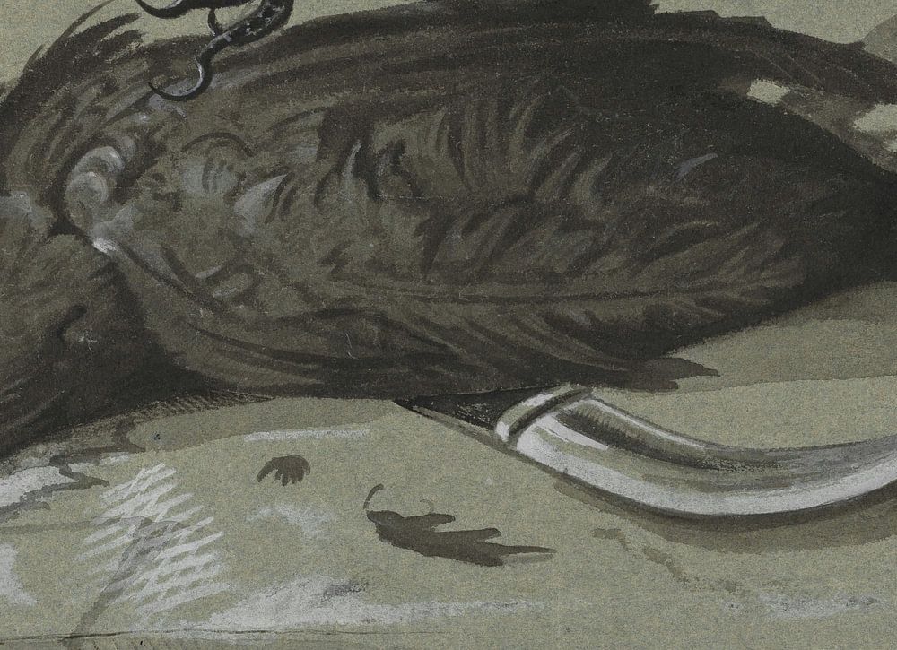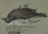 Dode raaf liggend over een mes op een stenen tafel, Anselm Feuerbach (1847)