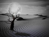 Surrealistische creatie van de maan op een dode boom