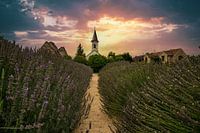 Dörgicse aan het Balatonmeer, lavendelwereld met sparren in de zonsondergang van Fotos by Jan Wehnert