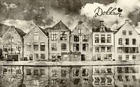 Dit aquarel van Dokkum is digitaal gegenereerd van de originele foto. Er zijn meerdere versies van dit aquarel in deze webshop, waaronder een zwartwit versie en versies met én zonder tekst.