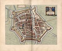 Jan (Joan) Willemsz. Blaeu (Amsterdam) was een Nederlandse drukker en uitgever, cartograaf en uitgever van vermaarde atlassen. Hier portretteert hij elke Nederlandse vestingstad.