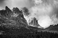 De bergketens van de Dolomiten gezien vanuit Moena in de Val di Fassa.