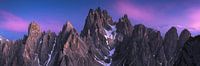 Ook bij onze aankomst in Tre Cime werden we diezelfde avond getrakteerd op een prachtige zonsondergang en blue hour, één van de mooiste die ik in tijden heb gezien. Als de zon ondergaat in het berggebied en de condities zijn precies goed, kan er een bepaalde gloed op de bergen ontstaan, de zogenoemde "Alpen Glow" - het lijkt dat net alsof de bergen 'licht geven' wat een prachtig gezicht is. Zo ook heel duidelijk te zien op de panoramafoto. Persoonlijk vind ik dit één van de meest indrukwekkende locaties in de Dolomieten, het is namelijk net alsof dit landschap direct uit een film als Lord of the Rings komt (Mordor). Het is een foto van ruim 60 megapixels en is dus zeer geschikt om groot te printen zonder verlies van detail. Dat is wat deze foto verdient.