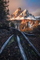 Fenomenaal licht op een lentemorgen op de Peitlerkofel in de Dolomieten.