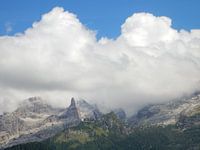 De Dolomieten in Italië , met wolken op de toppen van de bergen.