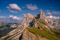 Gezicht op de Seceda en de Geislerspitzen in Zuid-Tirol