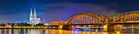 Panorama Keulen met kathedraal, Rijn en Hohenzollern brug bij nacht