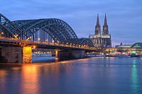 De Dom, het herkenningspunt van de stad Keulen, laat zich altijd van zijn mooiste kant zien! Tijdens de korte periode tussen zonsondergang en het vallen van de avond is er een prachtig kleurcontrast tussen het blauw van de lucht en de warme tinten van de lichten.