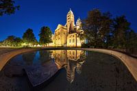 Kathedraal van speyer met een heel ander uitzicht, met de weerspiegeling in een fontein!