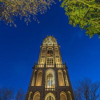 Deze foto van de Domtoren in Utrecht is gemaakt vanaf het Domplein op een avond in april 2015.