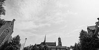 Domtoren en Sint Willibrordkerk van Janskerkhof, Utrecht (zwart-wit)