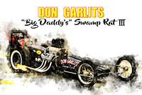 Illustratie van een serie legendarische dragsters en hot rods. Geschilderd met aquarellen op papier.