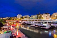 Bars en pubs aan het Donaukanaal bij de Schwedenplatz in Wenen, Oostenrijk.