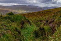 Gebied rondom de mount Errigal in de county Donegal. Schilderachtig mooi; bloeiende heide, donkere wolkenlucht, de zon komt voorzichtig tevoorschijn. De vele kleuren in het landschap. De snelle wisseling van lichtval; dat is Ierland.
