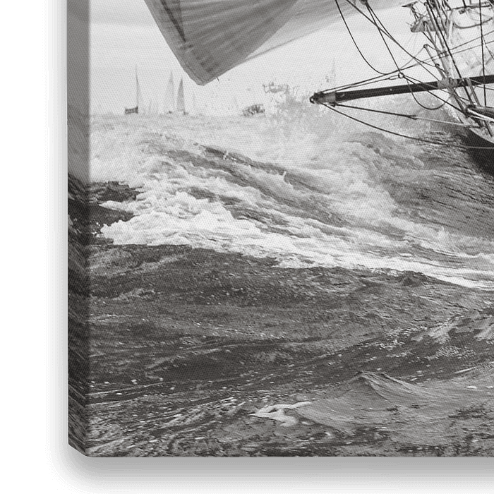 Deze zwart-wit foto vangt de kracht en precisie van een moderne oceaanrace. Het schuimende water, de strak gespannen zeilen en de geconcentreerde bemanning brengen het avontuur en de snelheid tot leven. Perfect voor liefhebbers…