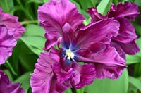 Tulp in donker paars van dichtbij gefotografeerd in het Keukenhof. Bijzonder aan deze foto zijn de felle en heldere kleuren, de fijnere details van de bloemen zo als de bloemstengel, de bloembodem, kelkbladen, kroonbladen, meeldraden, helmdraad, vruchtbeginsel, de stamper, stijl en stempel en de abstracte stijl van de foto.