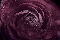 "Donker paarse - Roze bloem met waterdruppeltjes in het licht" is een bewerkte macrofoto van een donker paars / oudroze Ranonkel waarbij de blaadjes nog net niet allemaal open zijn gegaan. Op deze bloemblaadjes liggen waterdruppels.