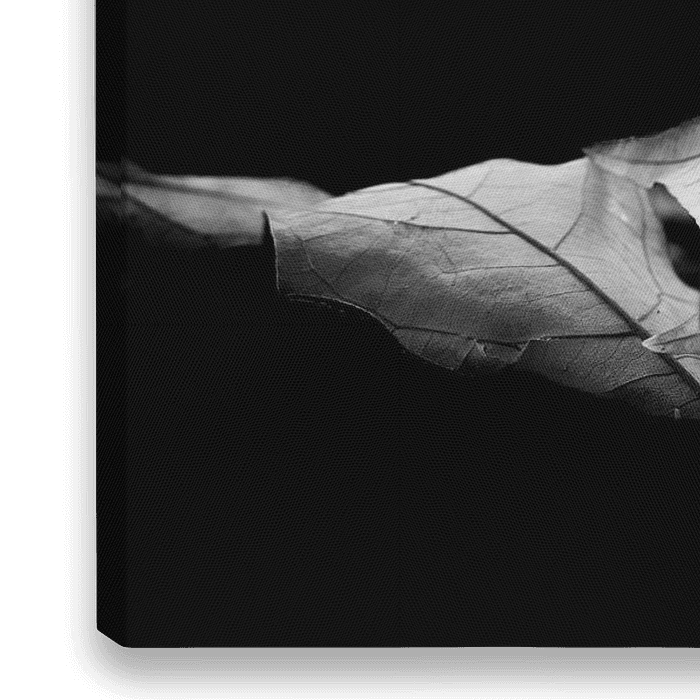 Een gevallen blad, eenzaam in de leegte. Met een fijne structuur toont het de overgebleven levenslijnen - een klassiek maar zeer expressief memento mori-motief in zwart-wit.
