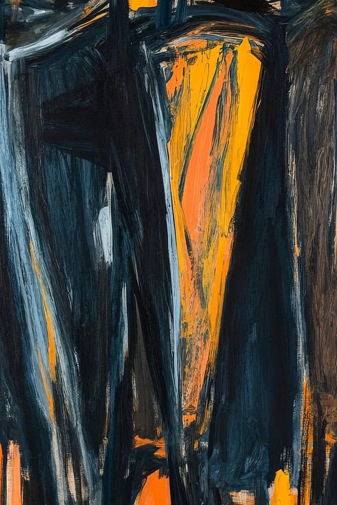 Details: abstract, mensen, figuren, oranje, zwart, moderne kunst, schilderij, groep, silhouetten,…