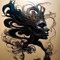 Modern portret van een Afrikaanse vrouw, subtiele kleuren, gemaakt met kunstmatige intelligentie,