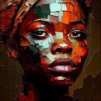 De Afrikaanse vrouw op het schilderij straalt een sterke en onafhankelijke energie uit, en lijkt te staan voor kracht, schoonheid en trots. De combinatie van de grove penseelstreken, de dikke verflagen en de intense blik van de vrouw creëren samen een prachtig en intrigerend kunstwerk dat je blijft boeien en inspireren.