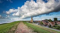 Op de dijk aan het wad een mooie donkere regenwolk boven Wierum (Friesland)