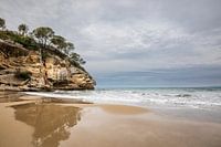 De Spaanse kust bij Salou in de lente, donkere wolken van een onweersbui hangen in de lucht.