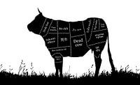 Digital composite - beef cuts from the cow (vegetarian/vegan) point of view. In various languages - Dutch, Spanish, Xhosa, Latin, Welsh, Vietnamese, Chinese, Persian, English, Thai, Hawaiian, German, Bulgarian, Hindi