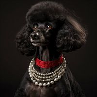 Bewonder een Labra Doodle in prachtige traditionele Spaanse kleding, ditmaal met een sierlijke rode halsband en een subtiele parelketting. Dit kunstwerk combineert de charme van de Labra Doodle met de elegante stijl van Spaanse tradities, versterkt door de verfijnde accessoires. Een meesterlijke weergave van karakter, cultuur en subtiele luxe.