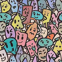 Vrolijk kunstwerk van doodle figuurtjes.