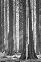 Soms is een beschadigde boom de blikvanger in een bos en deze boom was waarschijnlijk door de bliksem getroffen en een strook schors was helemaal van de top van de boom tot aan de voet losgekomen. Hoewel schade altijd triest is om te zien, hoort het ook bij de natuur en ik wilde niet alleen maar perfecte boomstammen fotograferen. Dit moest het hoofdonderwerp van mijn foto worden en toen de zonnestralen tevoorschijn kwamen, werden de bomen op de achtergrond wat meer verborgen in de nevel en dat is het moment waarop ik de foto nam. Ik heb er een zwart-wit foto van gemaakt omdat de bruintinten alleen maar afleidden van de zonnestralen en de heldere lijn op de boom