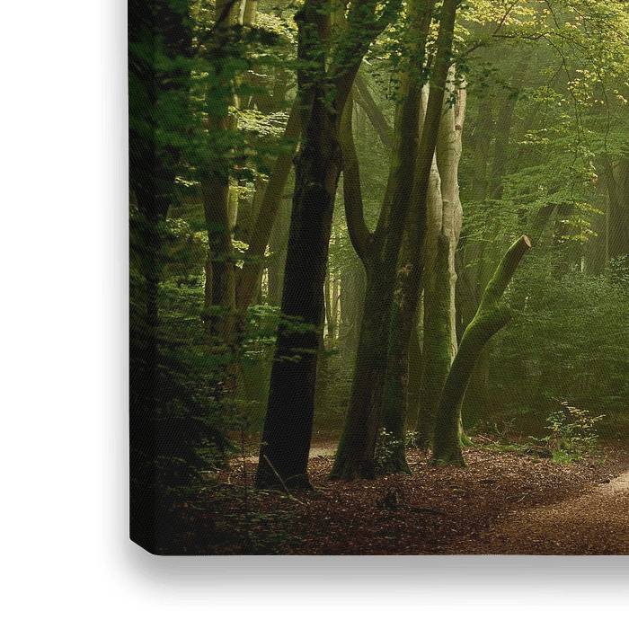 Het vroege ochtendlicht schijnt door de bomen in het Speulderbos en verlicht de slingerende zandweg. Er hangt nog wat ochtendnevel tussen de oude statige bomen. Het Speulderbos is een mooi natuurgebied met diverse bosbewoners en heel diverse fauna.