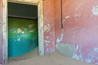 Kolmanskop is een spookstad in de Namib woestijn in het zuiden van Namibië, landinwaarts vanaf de havenstad Lüderitz is het 10 kilometer. Zandstormen hebben de stad overgenomen. Het zand is metershoog opgewaaid in de huizen. Tegen 1950 was Kolmanskop helemaal verlaten en viel het ten prooi aan het woestijnzand. Langzaam worden de gebouwen met zand gevuld.