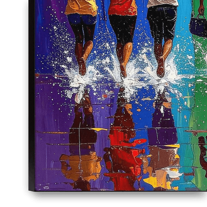 Koop dit abstracte kunstwerk Door regen en reflectie: een gemeenschappelijke beweging in het lichtspectrum van de Pride-vlag van AidasignArt op canvas, aluminium dibond, (ingelijste) fotoprint, behang en ArtFrame, op maat geprint in Fine-Art kwaliteit.