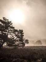 Gezien op een vroege dinsdagochtend op de Westerheide bij Hilversum: de zon breekt eindelijk door het wolkendek.