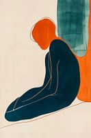 In zachte, harmonieuze kleuren en met vloeiende lijnen roept deze illustratie een gevoel van introspectie en rust op. De indrukwekkende combinatie van diepblauw en warm oranje creëert een rustgevende sfeer, ideaal voor de slaapkamer of een meditatieve retraite in de woonkamer. Het nodigt uit tot reflectie en ontspanning.
