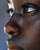 Deze gedetailleerde close-up van het gezicht van een vrouw toont bedachtzame ogen en uitdrukking. Elk detail van de ogen is nauwkeurig weergegeven, waardoor de diepte en complexiteit van de gedachten en emoties van de vrouw tot uitdrukking komen. De zachte lijnen en contouren van haar gezicht geven een rustige elegantie aan de scène, terwijl de blik van de vrouw de kijker vasthoudt en aanzet tot nadenken. De subtiele nuances van de gezichtsuitdrukkingen onthullen een innerlijke wereld vol reflectie en gevoeligheid. Dit schilderij nodigt ons uit om ons onder te dompelen in de gedachten en gevoelens van de vrouw en ons te verbinden op een diep emotioneel niveau.