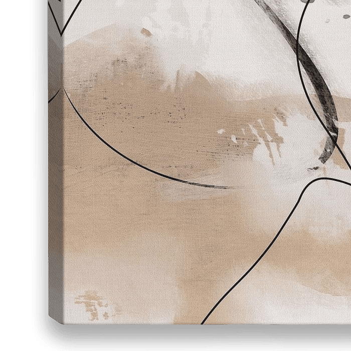 Minimalistische lijntekening op een abstracte achtergrond met neutrale kleurtonen.